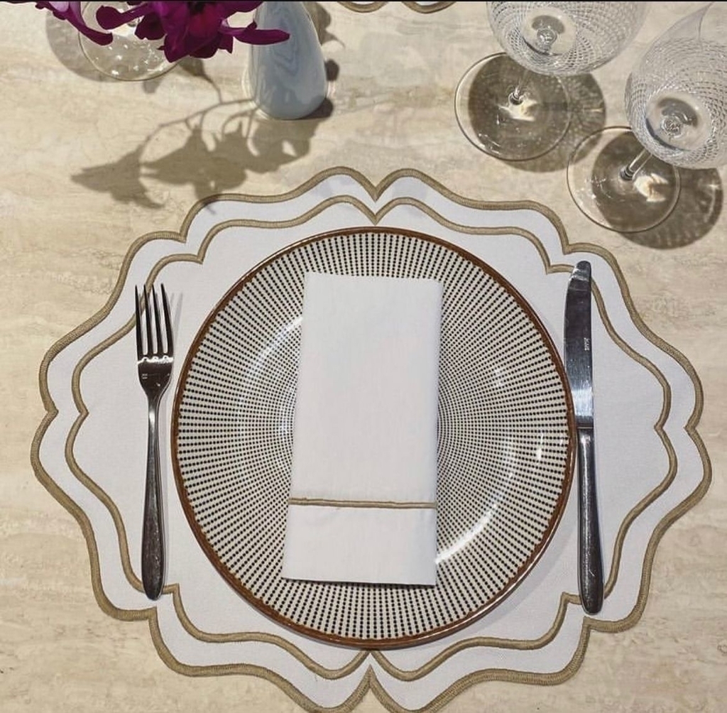 O conjunto clássico branco bordado com linha bege oferece uma combinação de elegância atemporal e sofisticação discreta. Ideal para ocasiões formais, jantares românticos ou celebrações especiais, este conjunto traz um toque de artesanato refinado à mesa, destacando a beleza dos detalhes sutis e da qualidade dos materiais. Cada elemento, desde os jogos americanos até os porta-talheres, é cuidadosamente escolhido para criar uma experiência de mesa harmoniosa e visualmente encantadora.